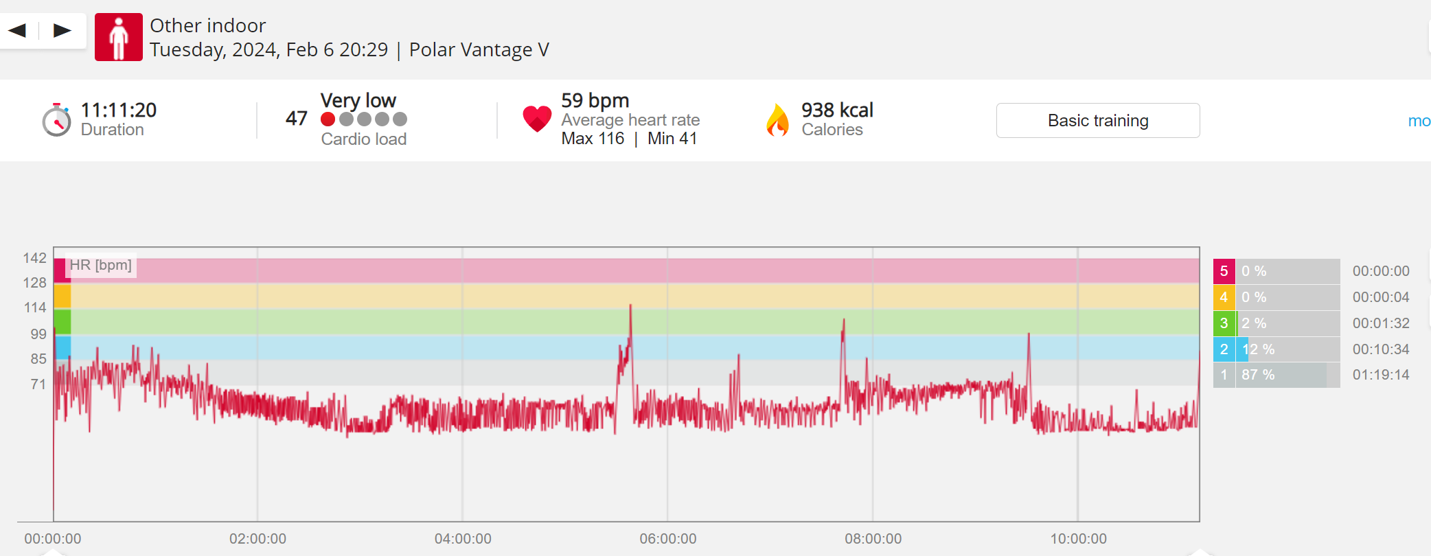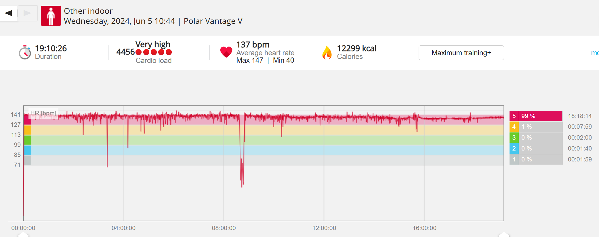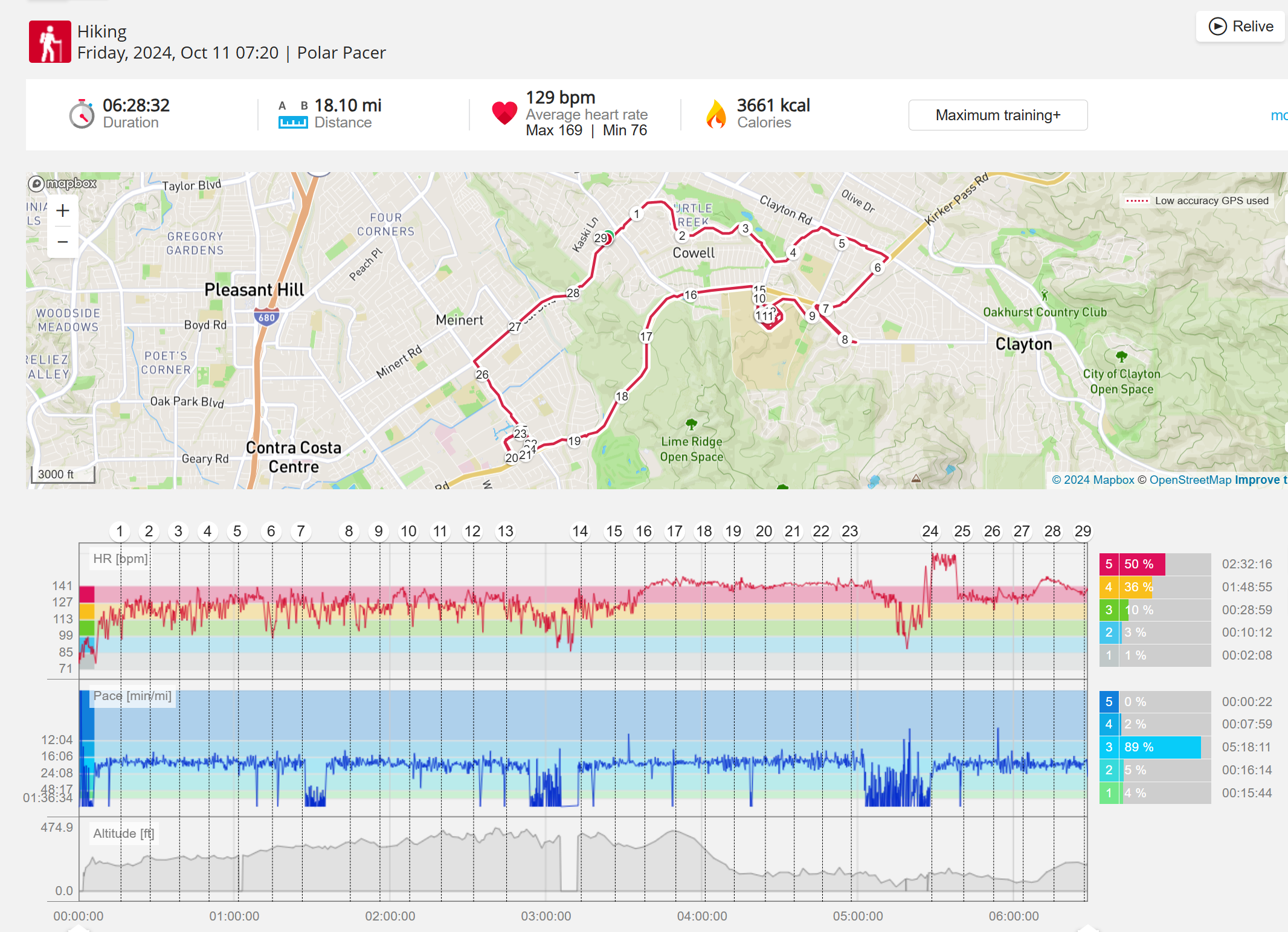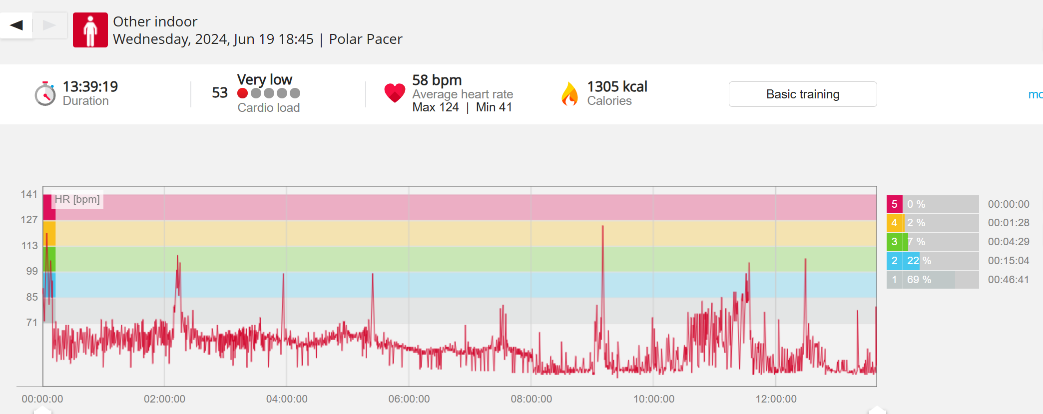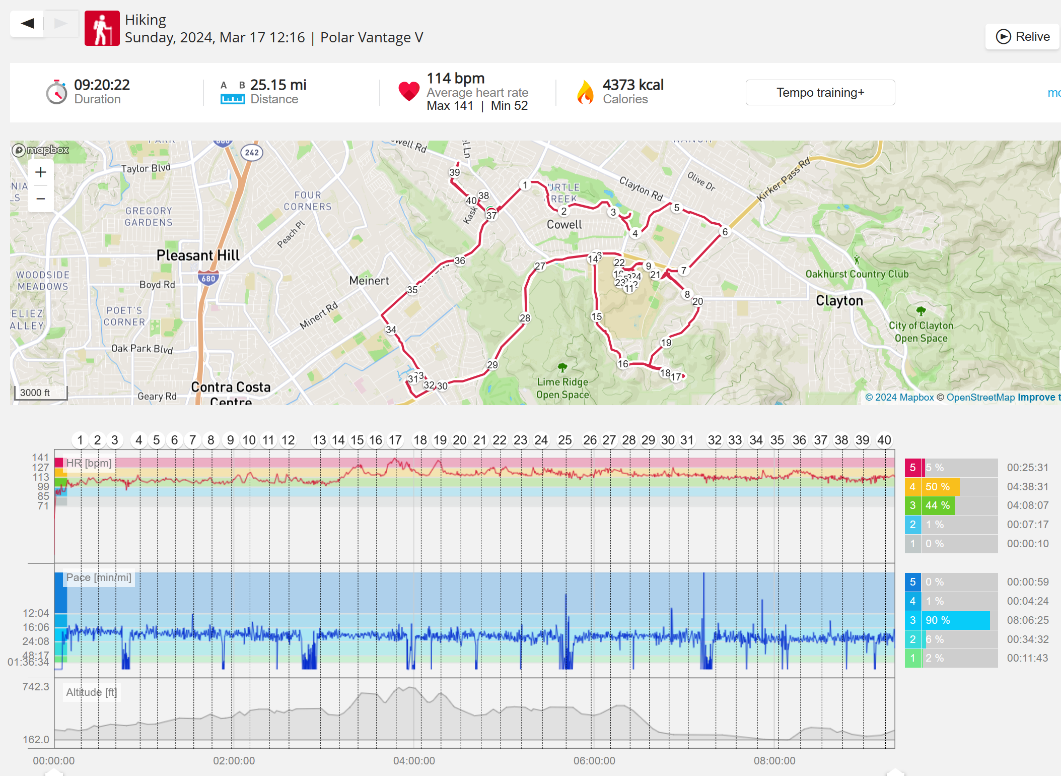 159108 - hiking 00 miles and no continuous extended period steady elevated HR >