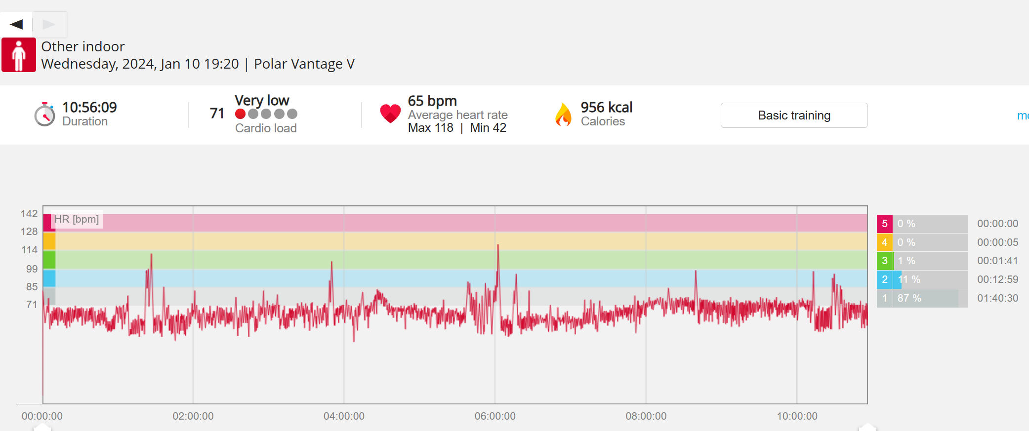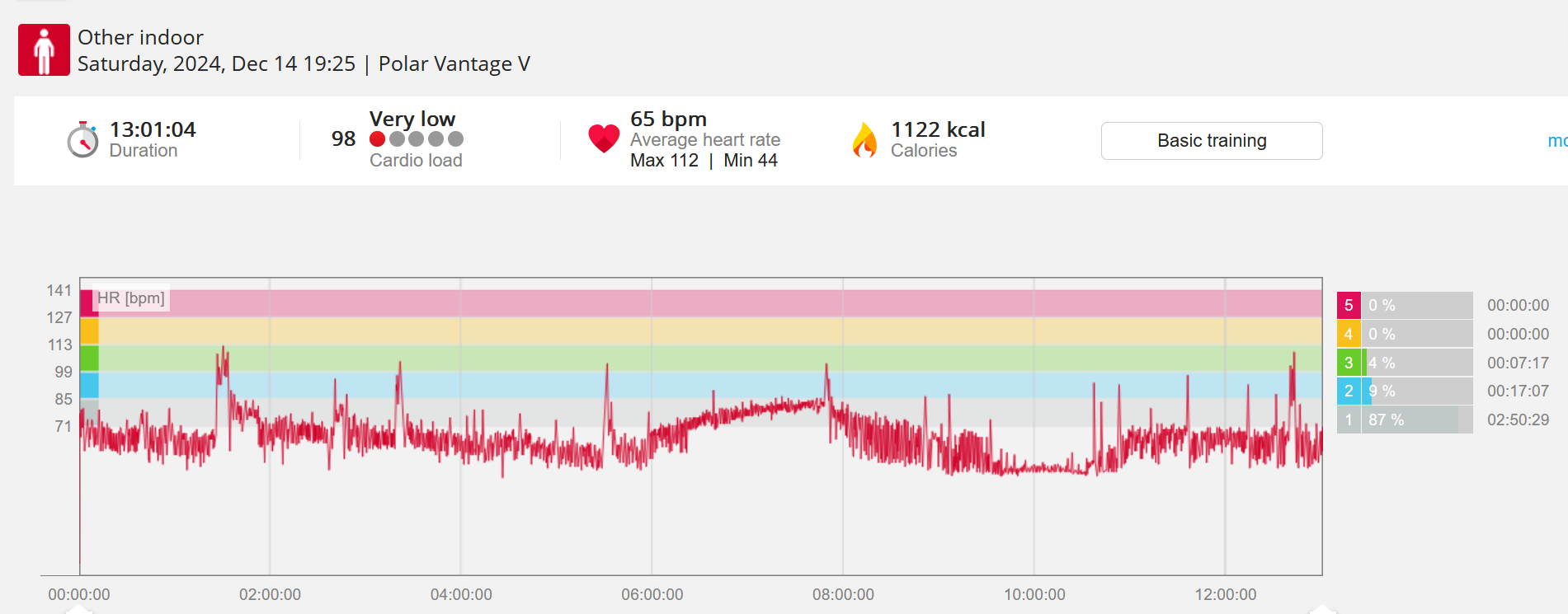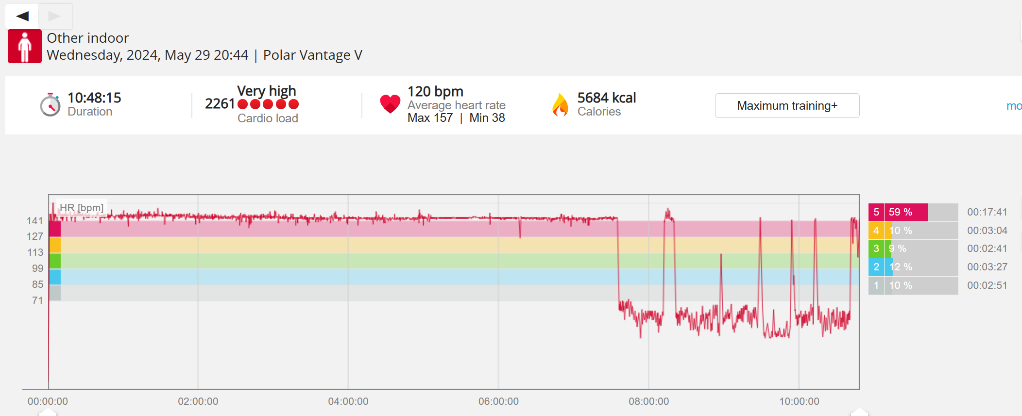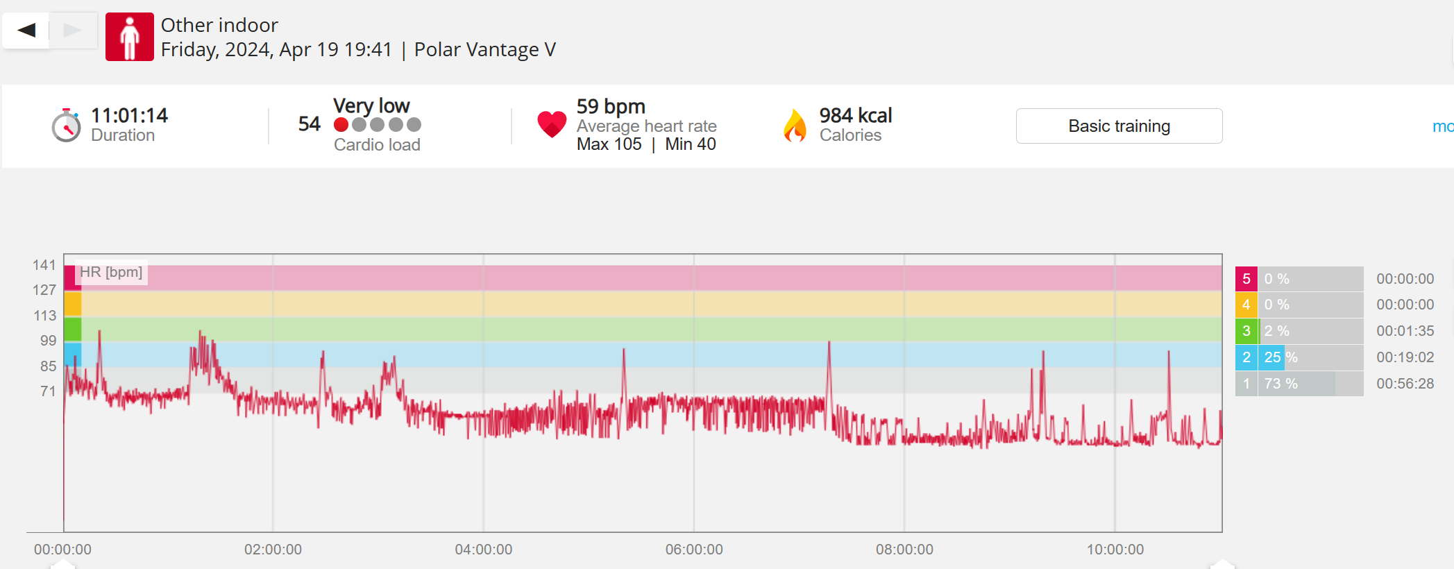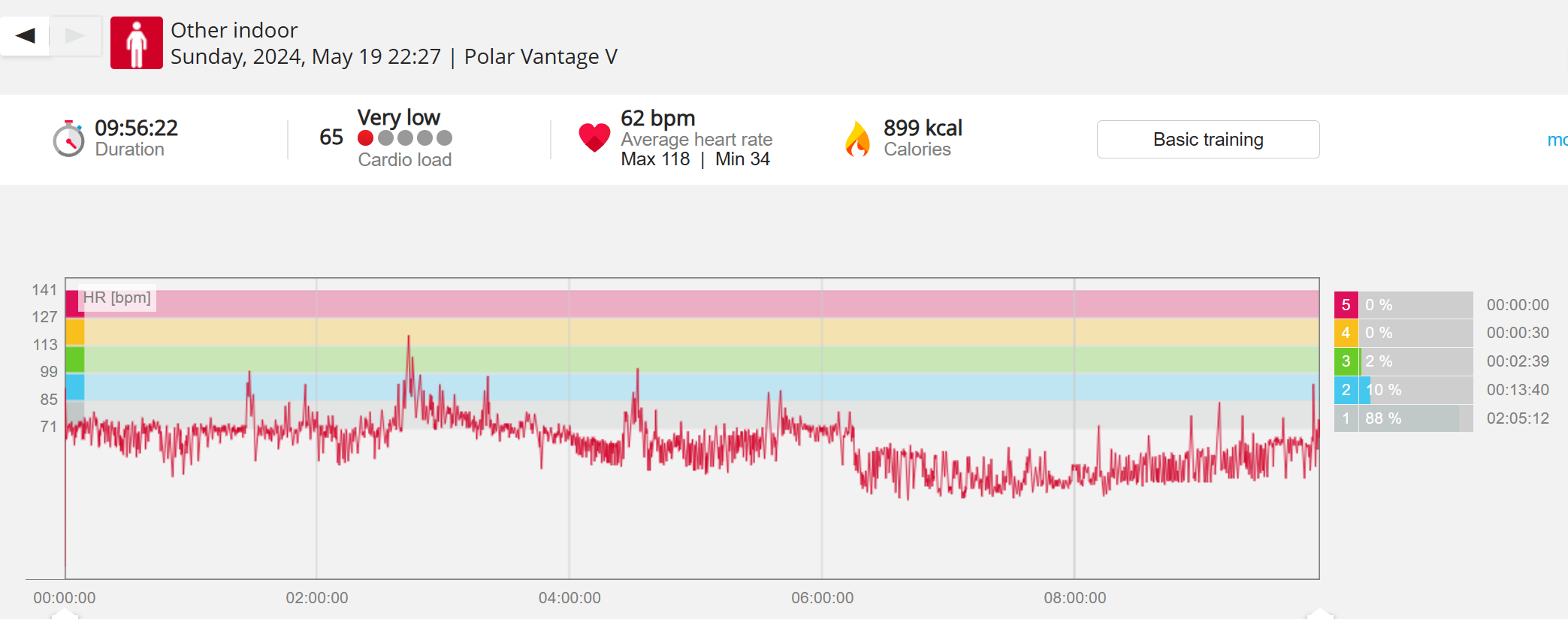 159108 - hiking 00 miles and no continuous extended period steady elevated HR >
