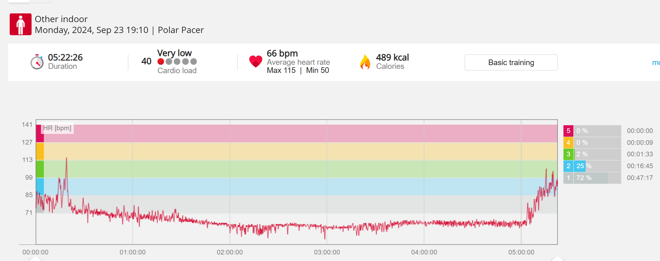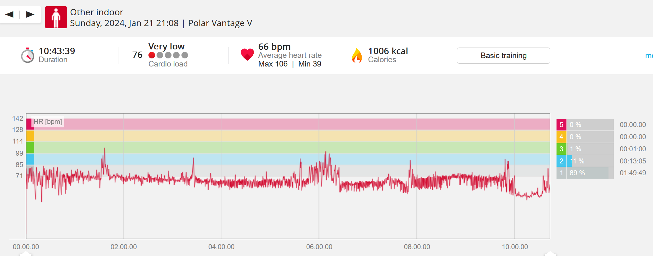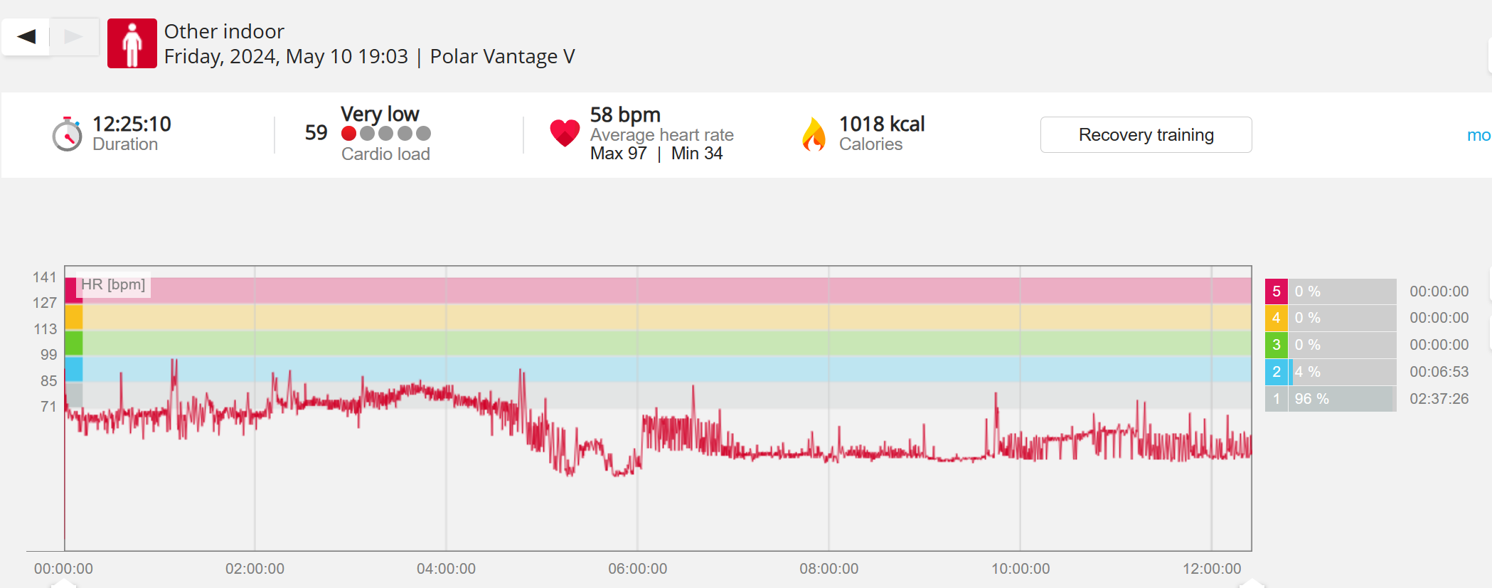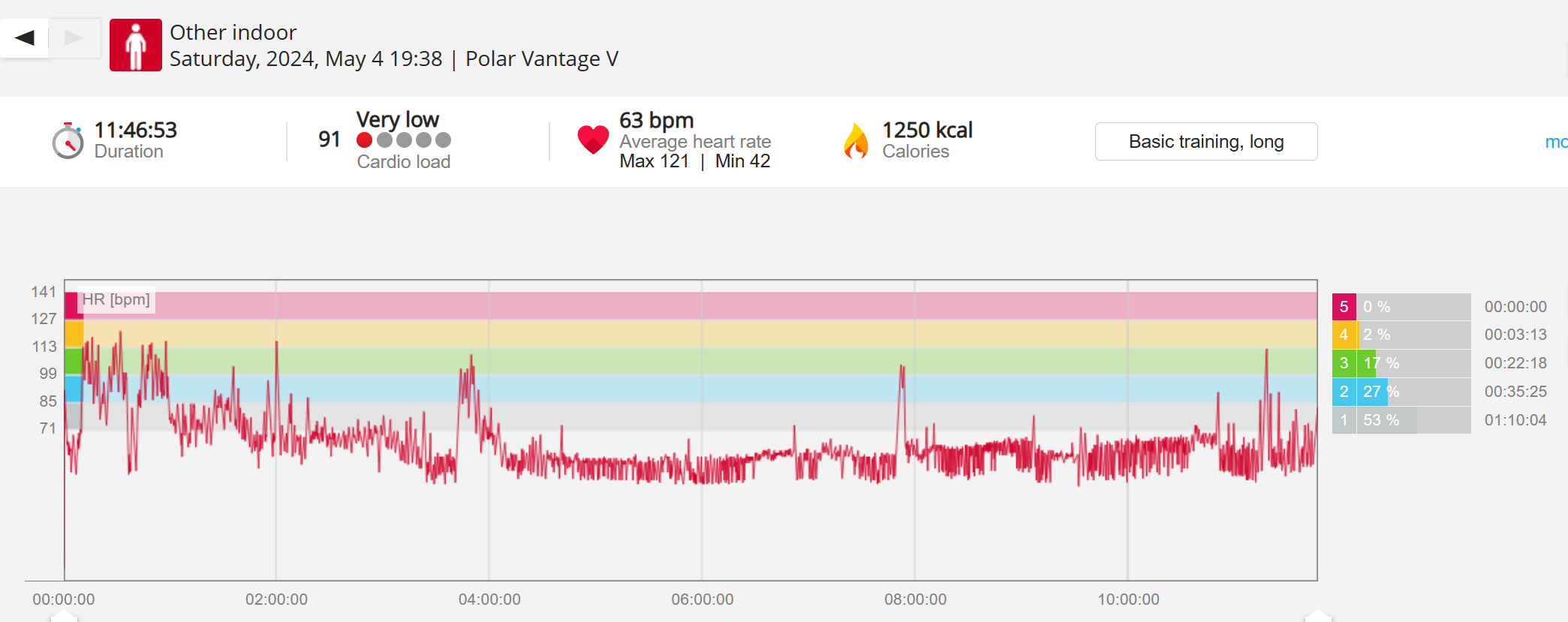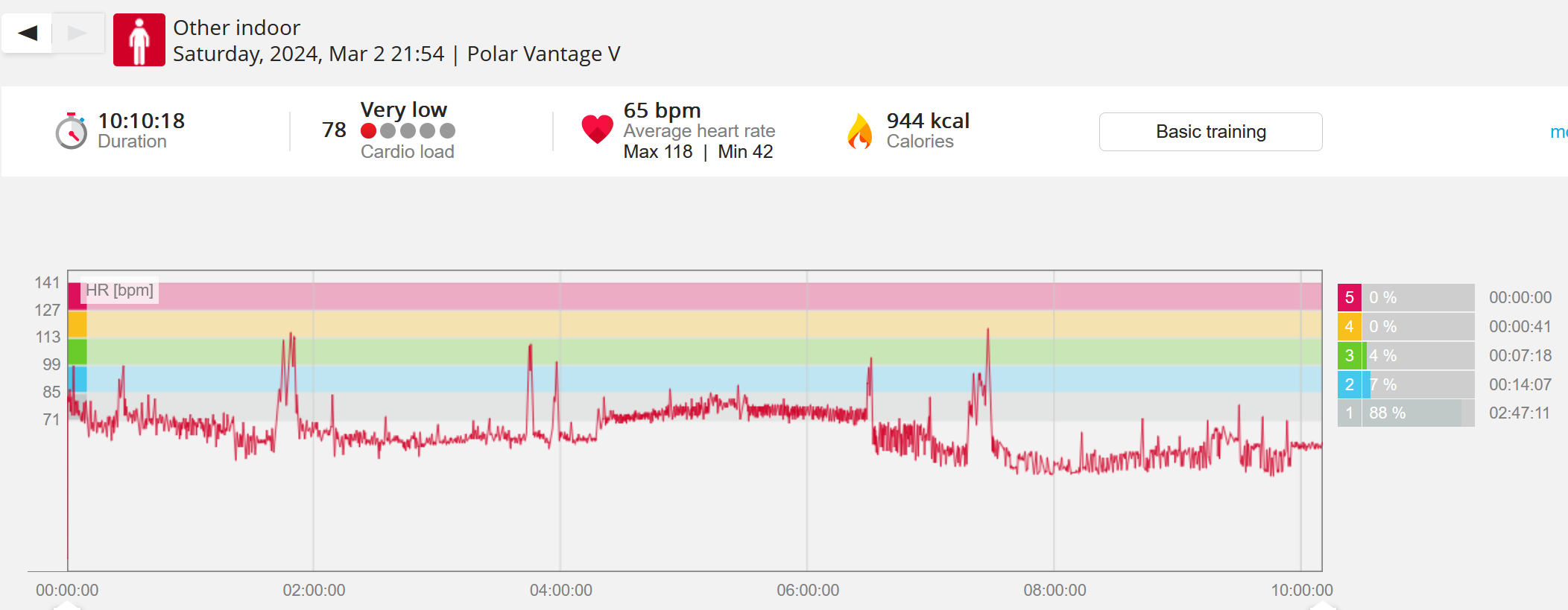 159108 - hiking 00 miles and no continuous extended period steady elevated HR >