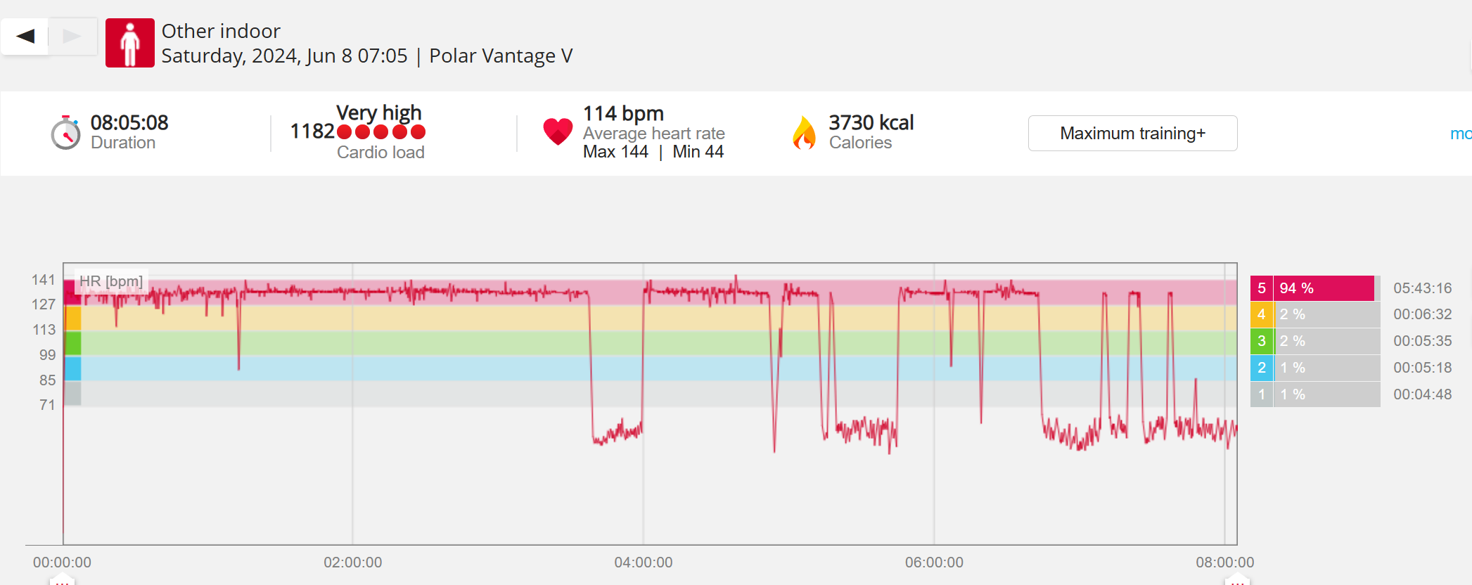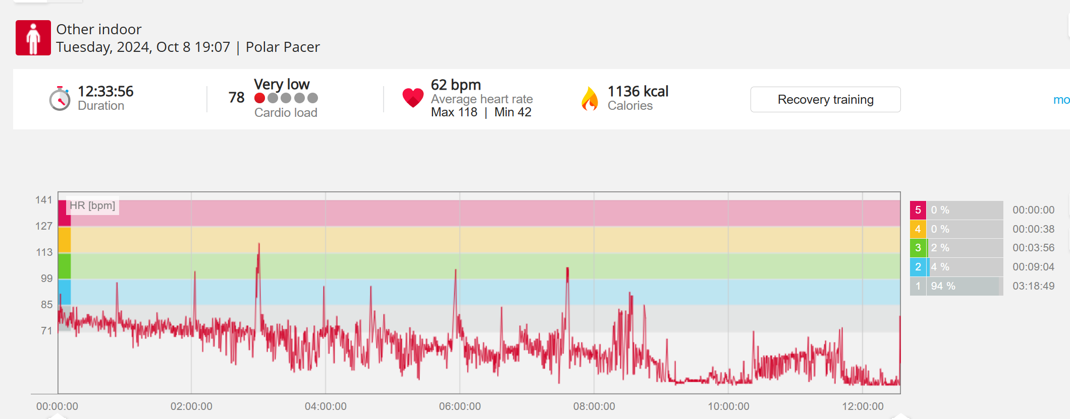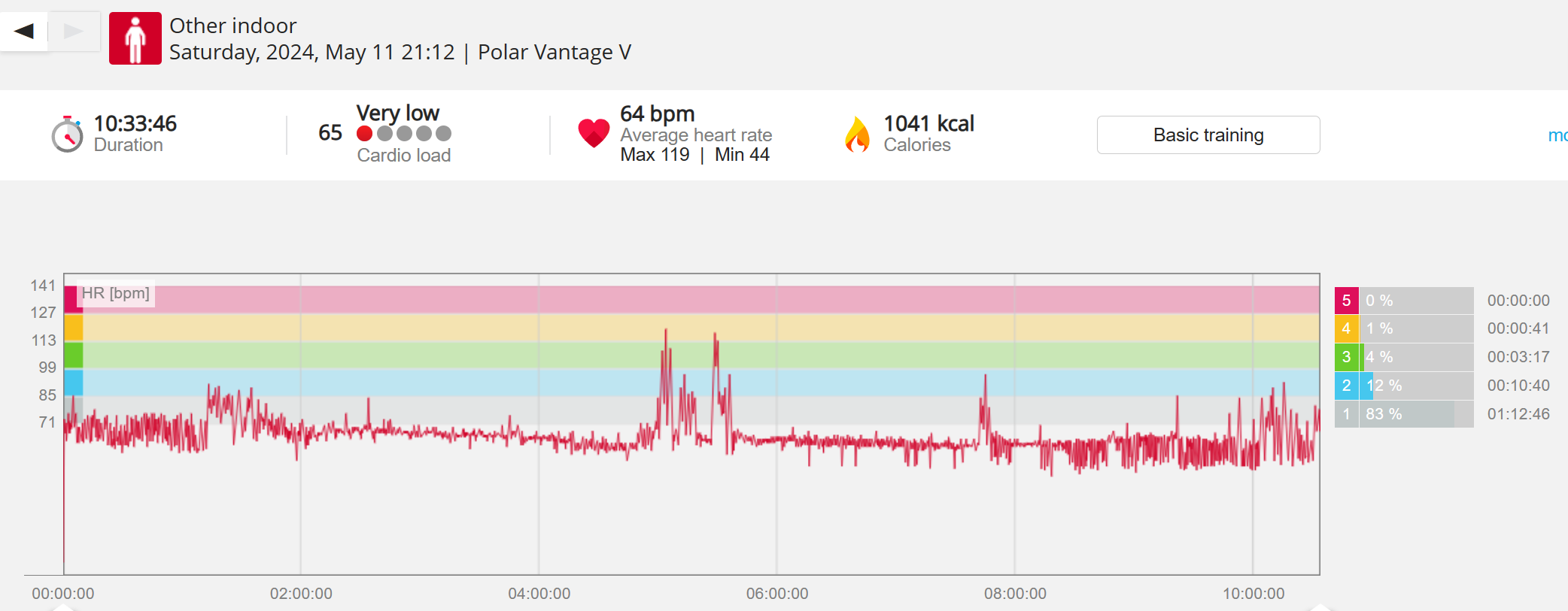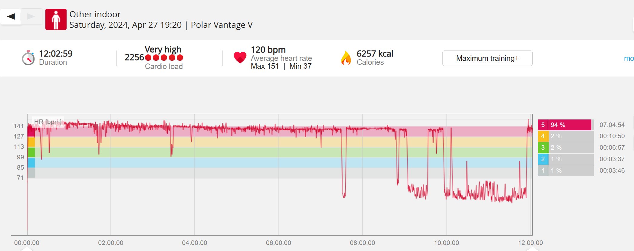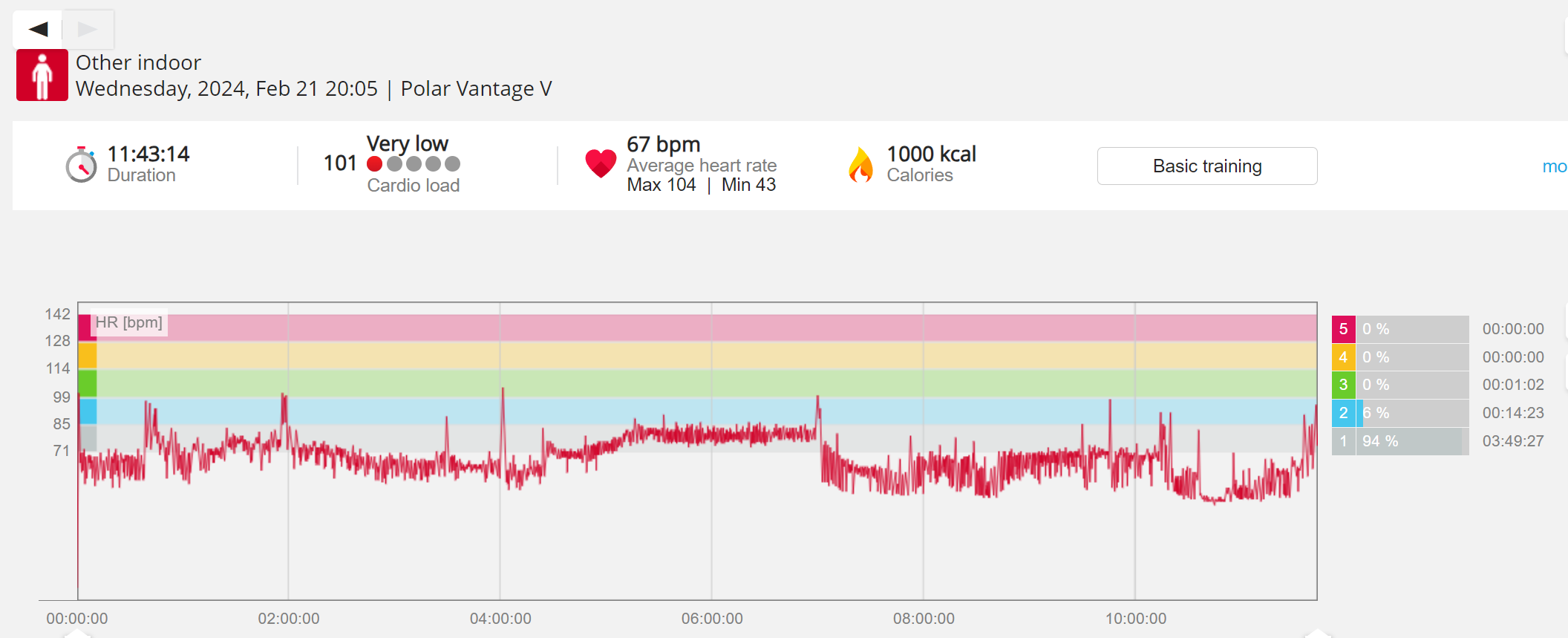 159108 - hiking 00 miles and no continuous extended period steady elevated HR >