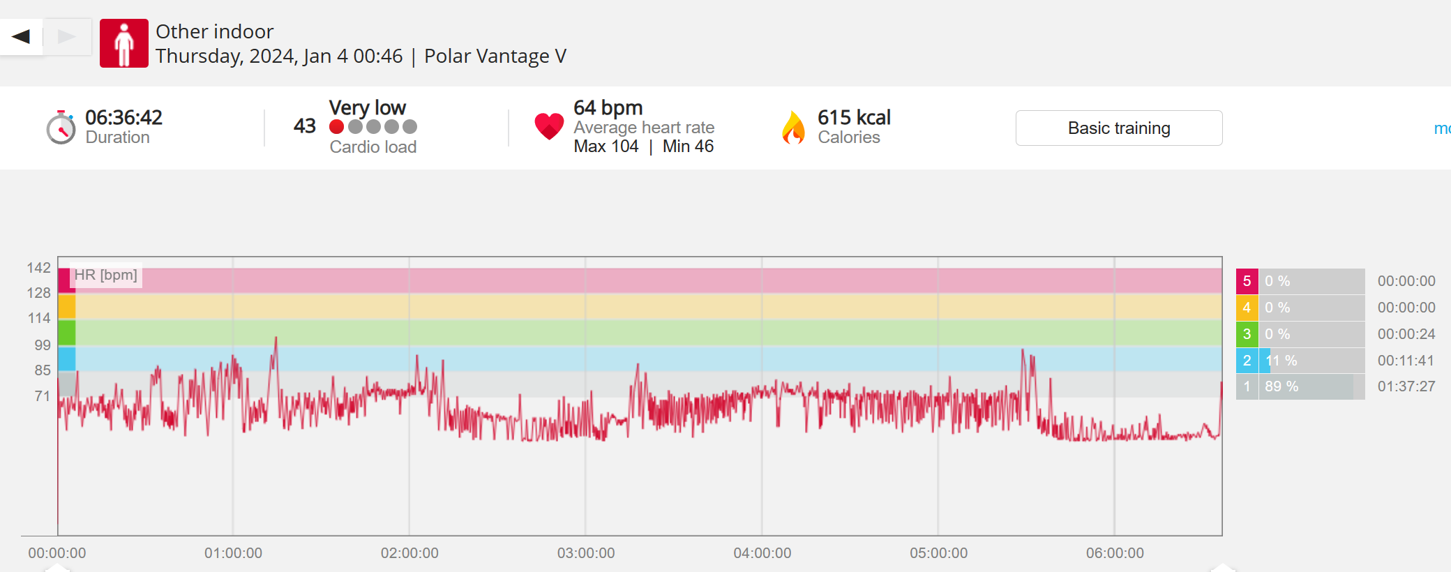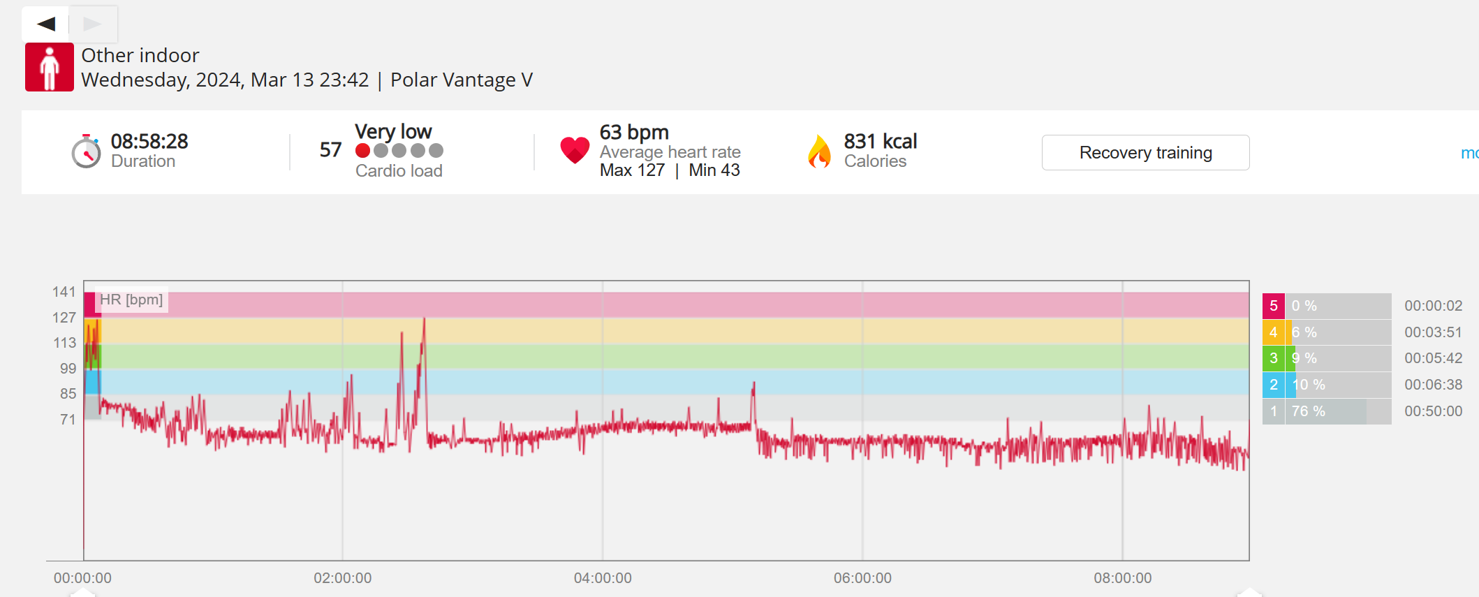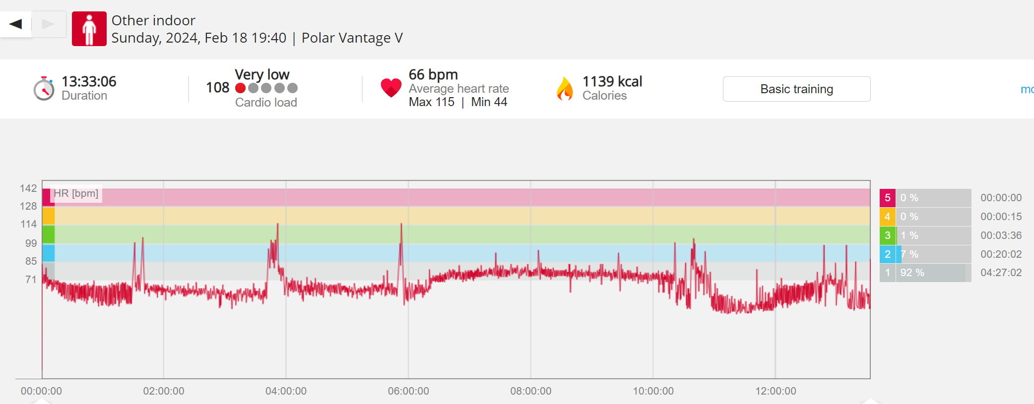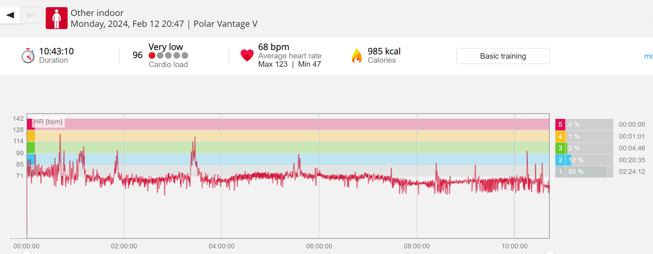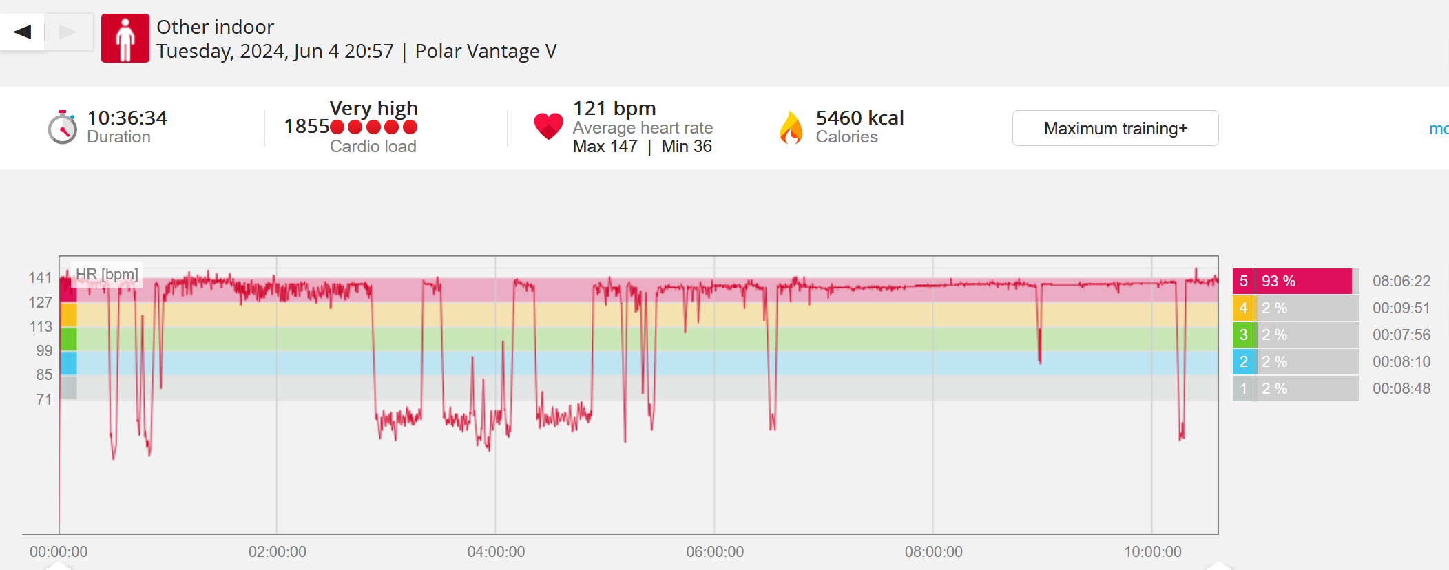 159108 - hiking 00 miles and no continuous extended period steady elevated HR >