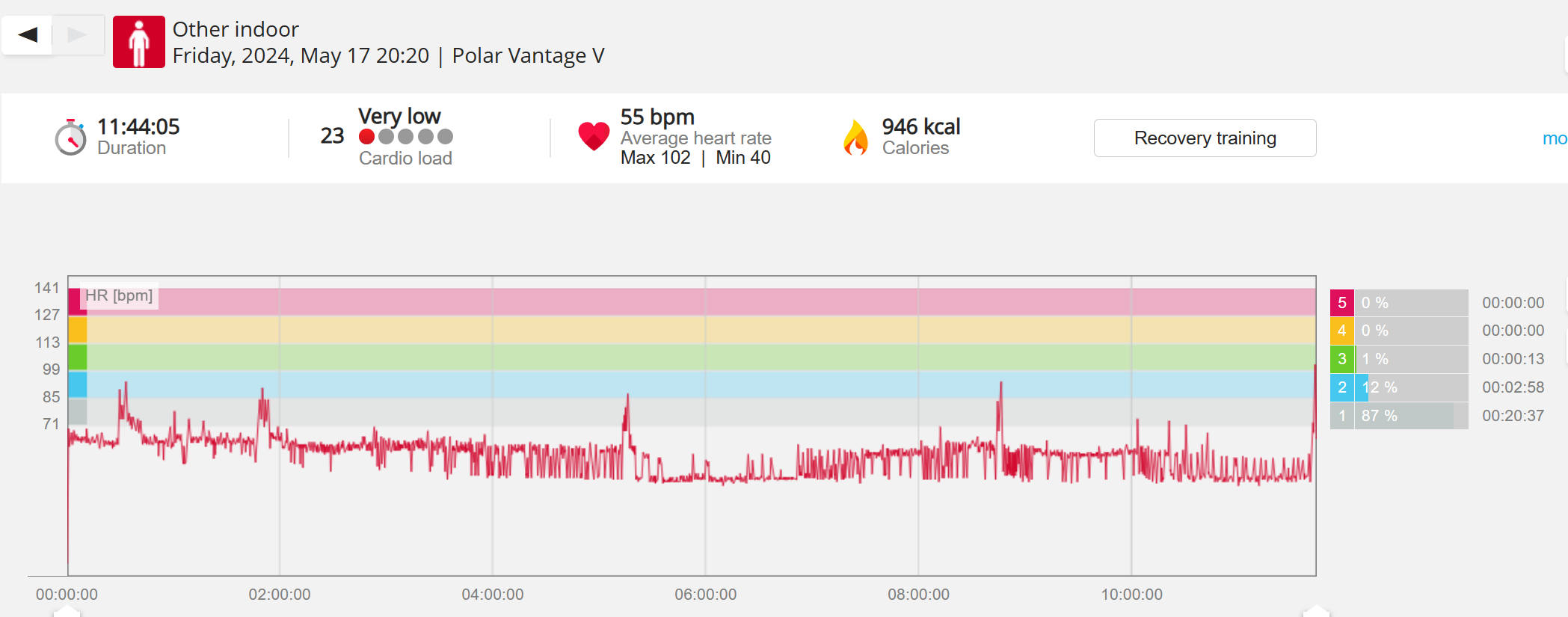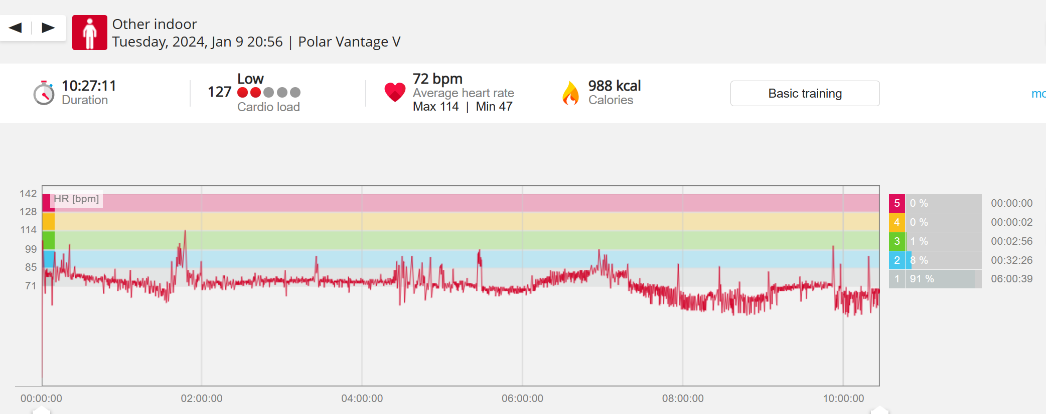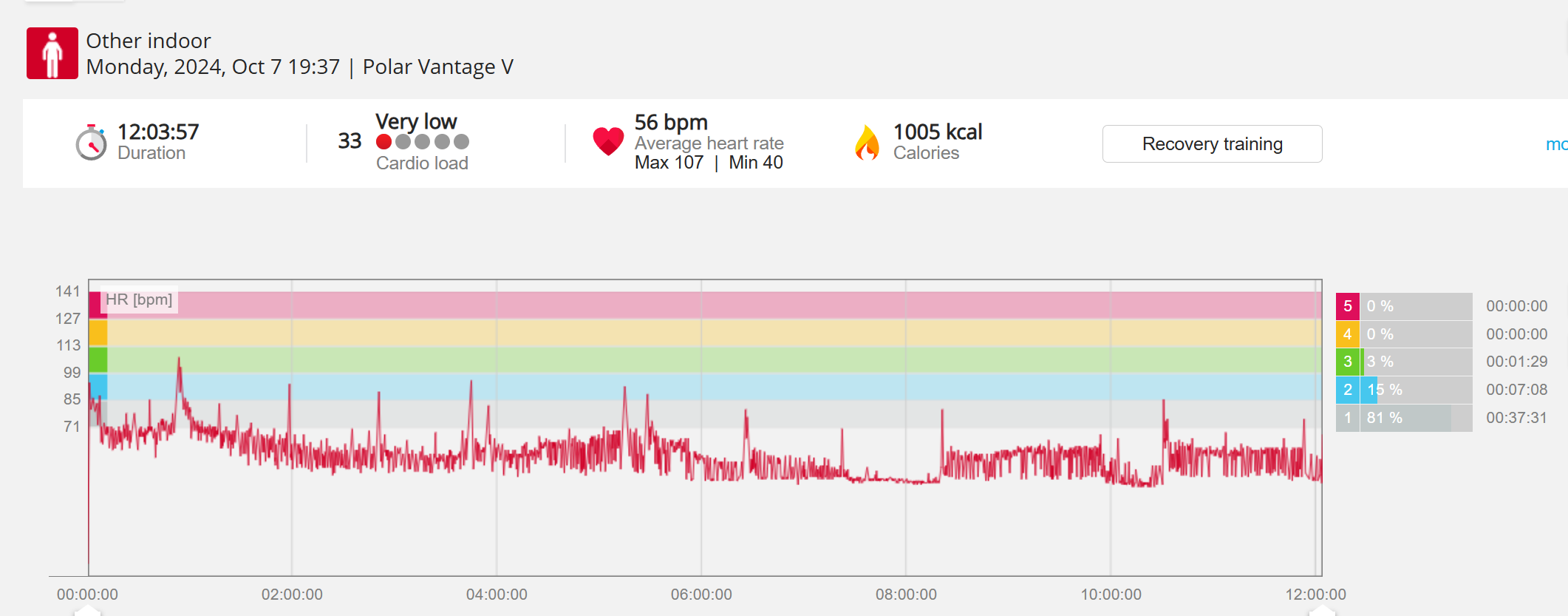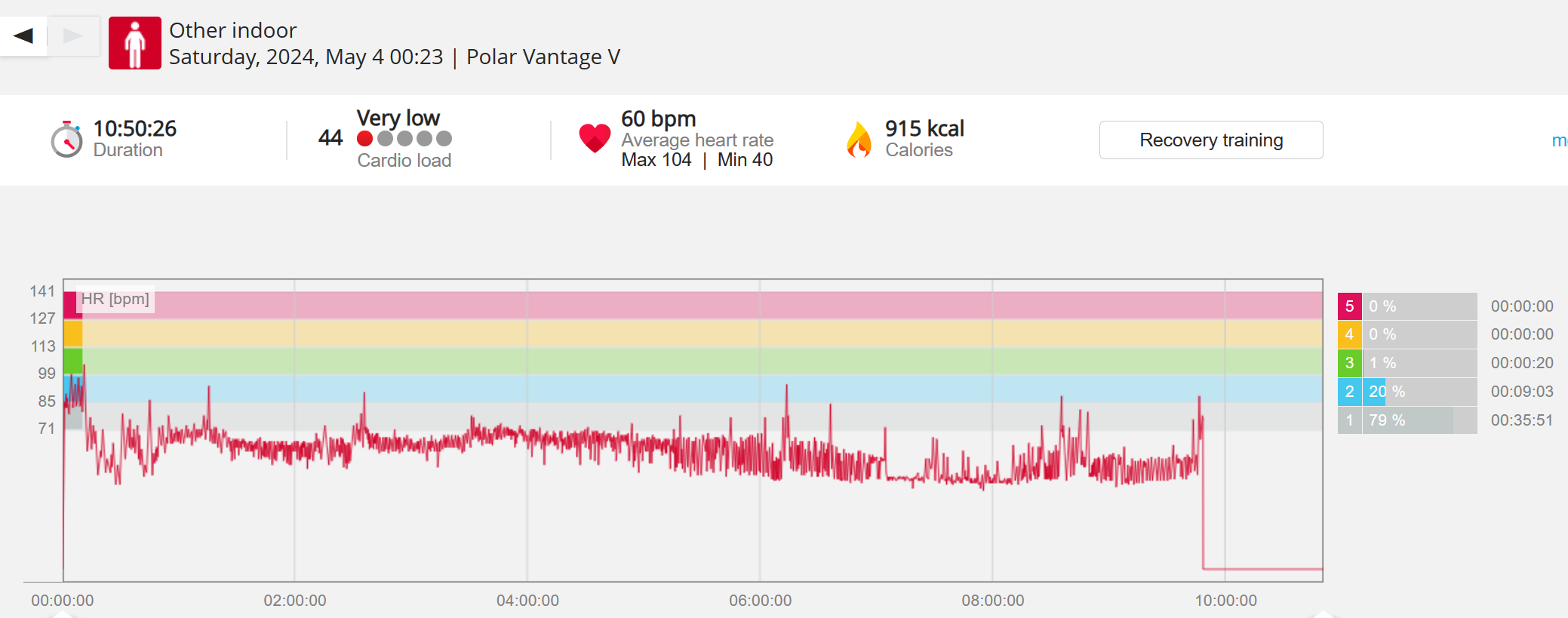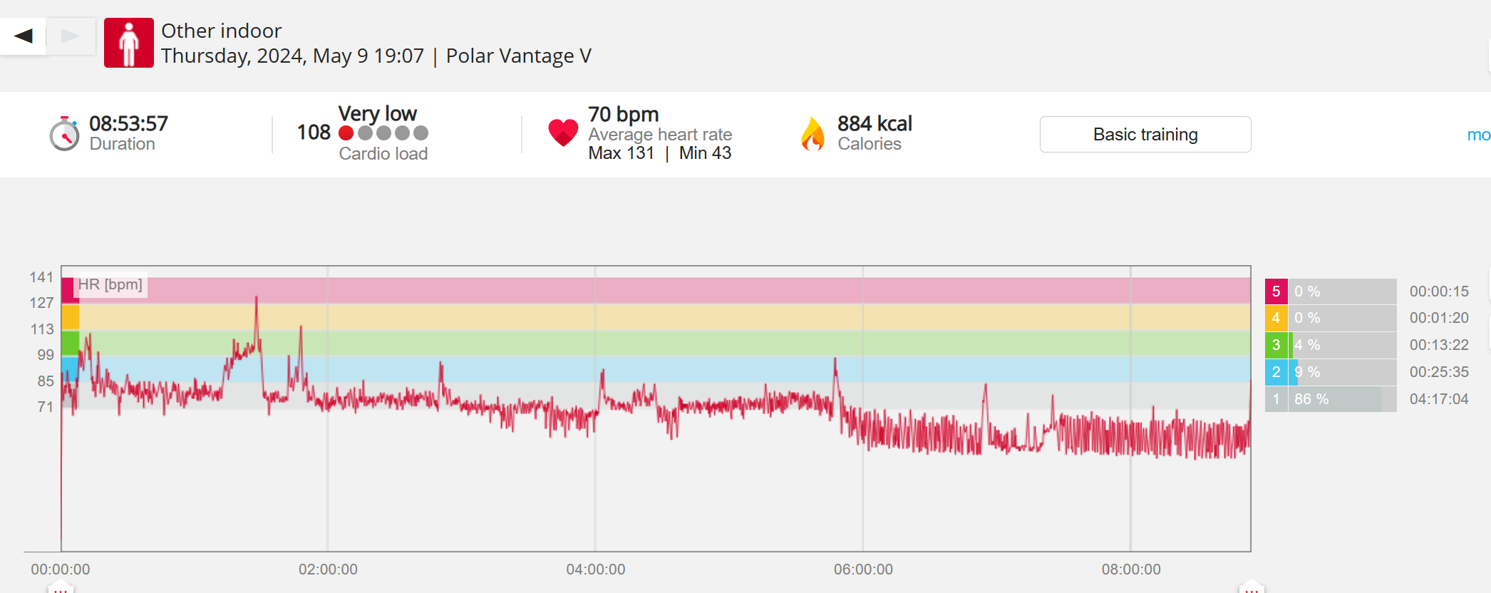 070991 - Post hike HR profile beginning 2009 aligns with indoor activity
