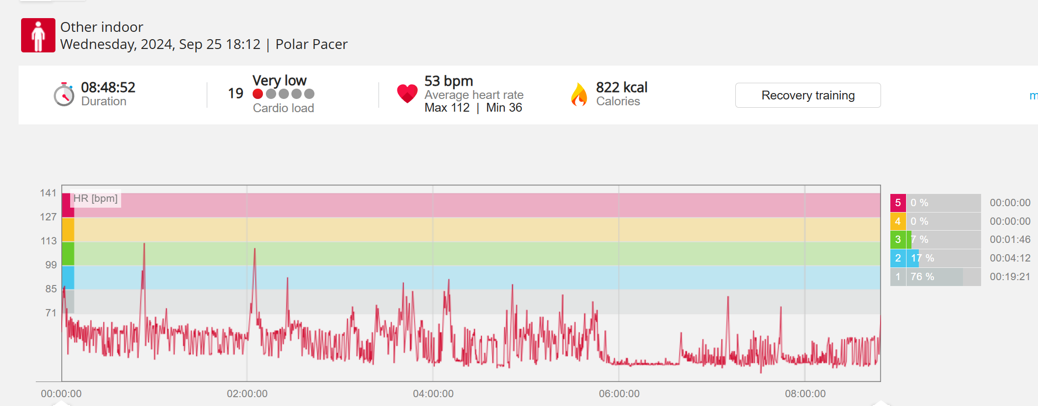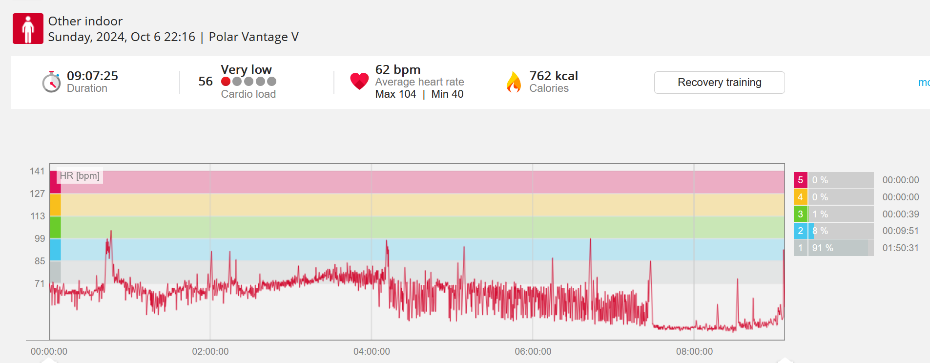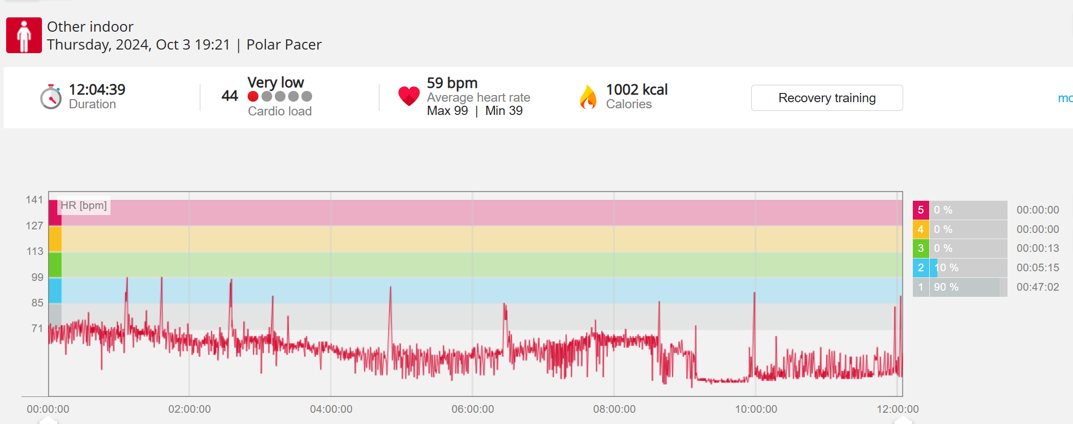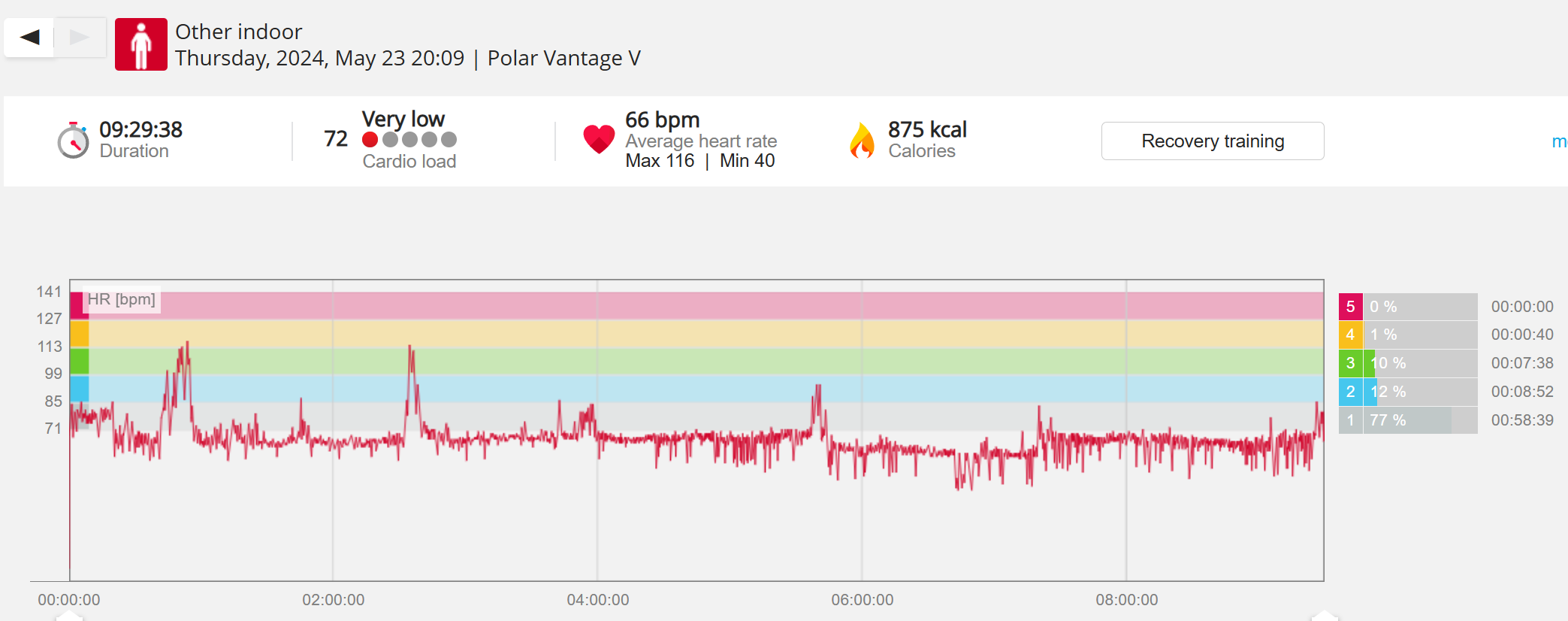 070991 - Post hike HR profile beginning 2009 aligns with indoor activity