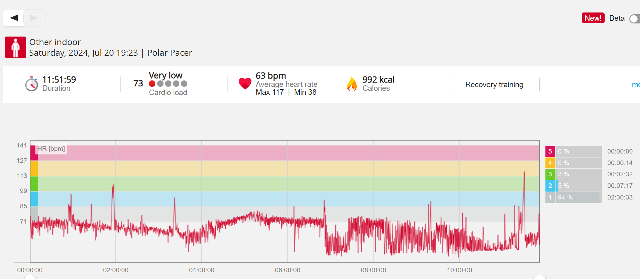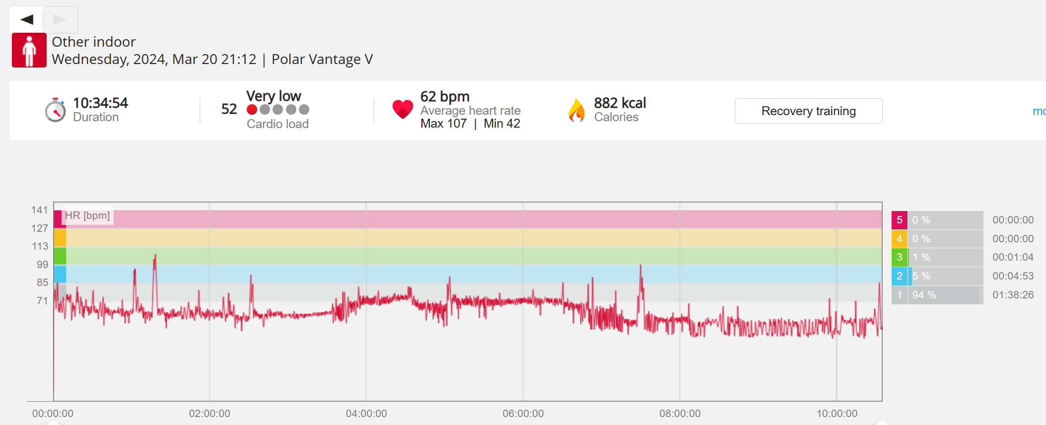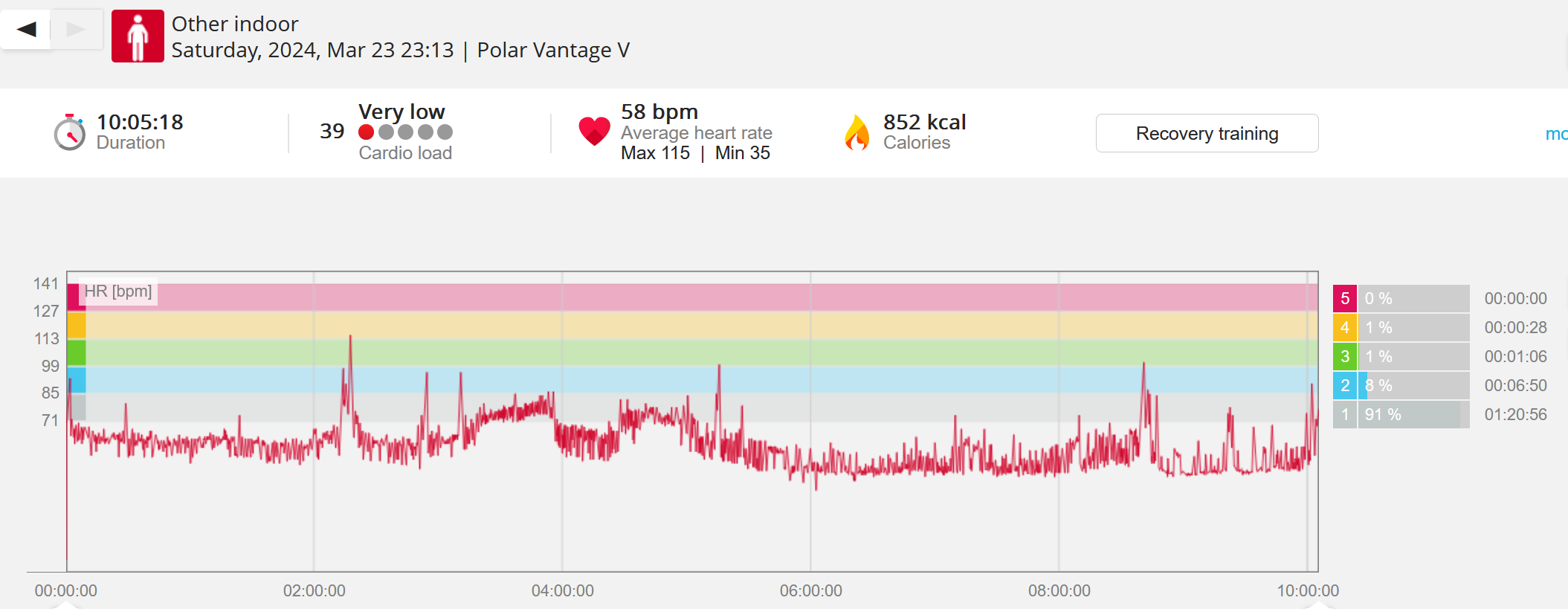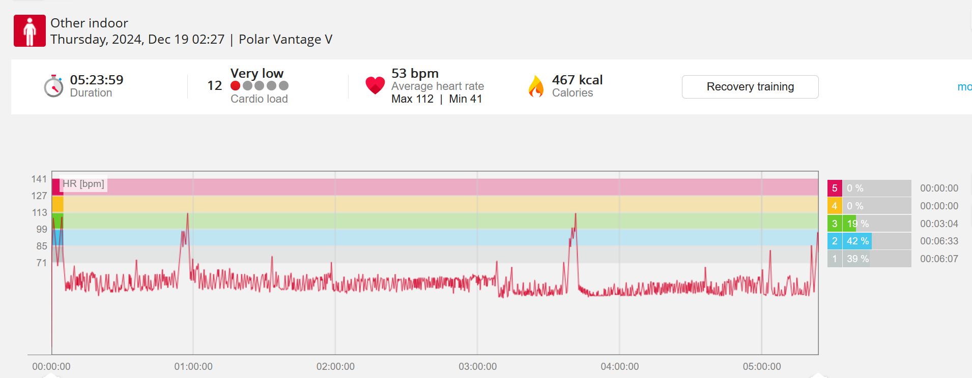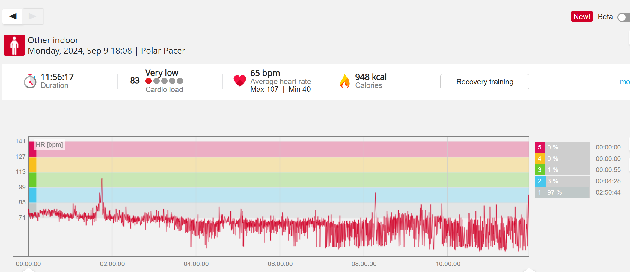 070991 - Post hike HR profile beginning 2009 aligns with indoor activity
