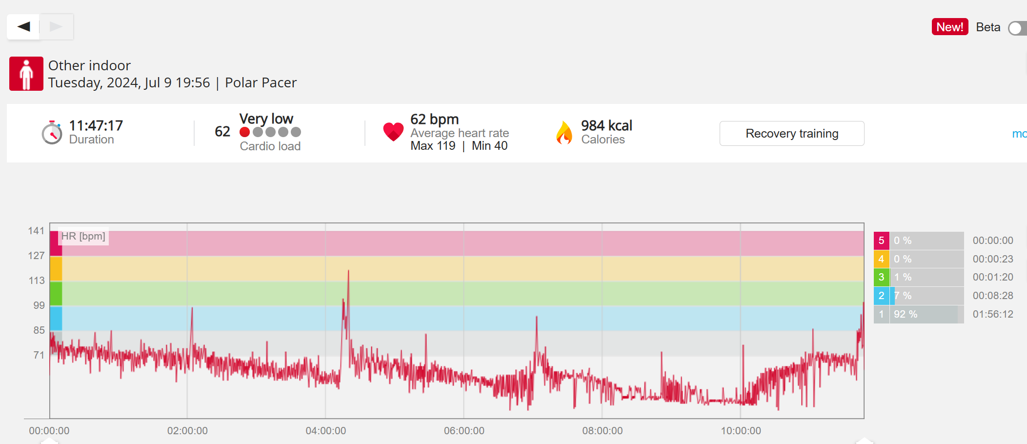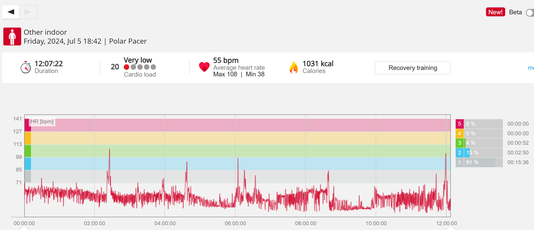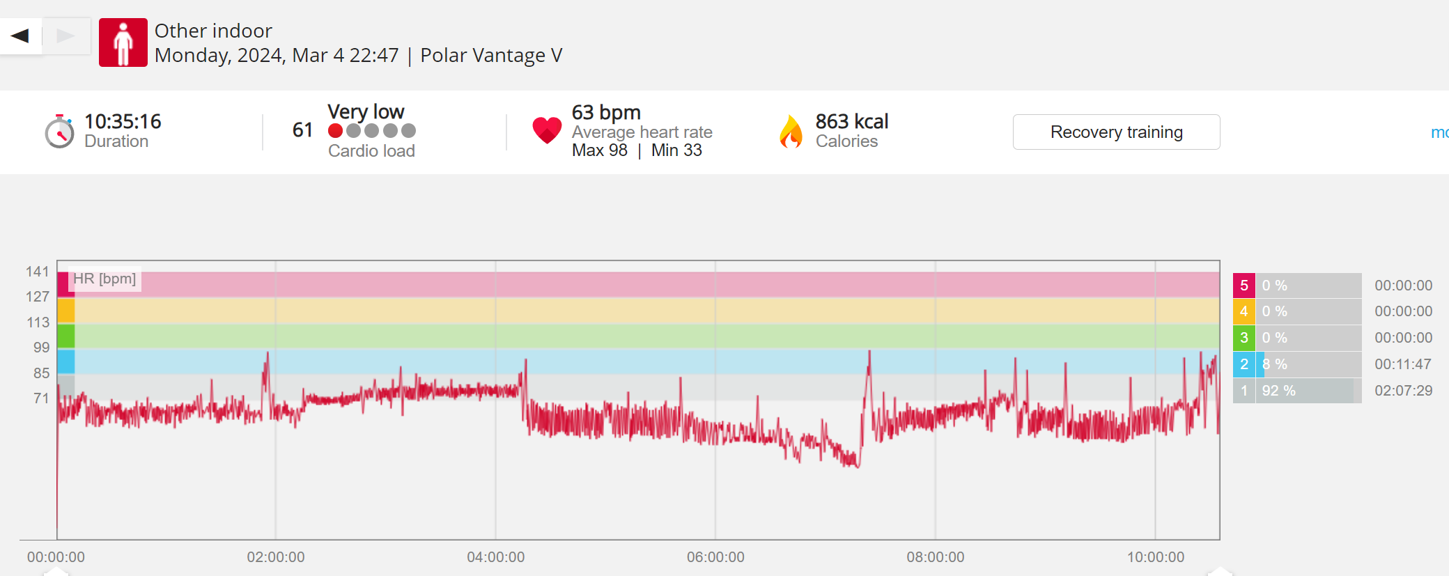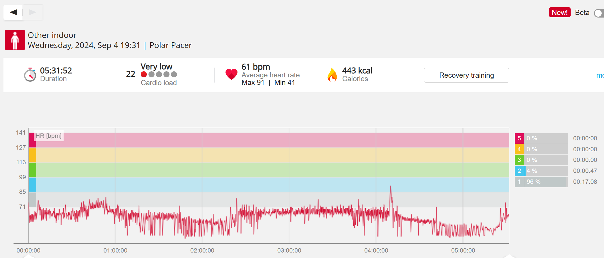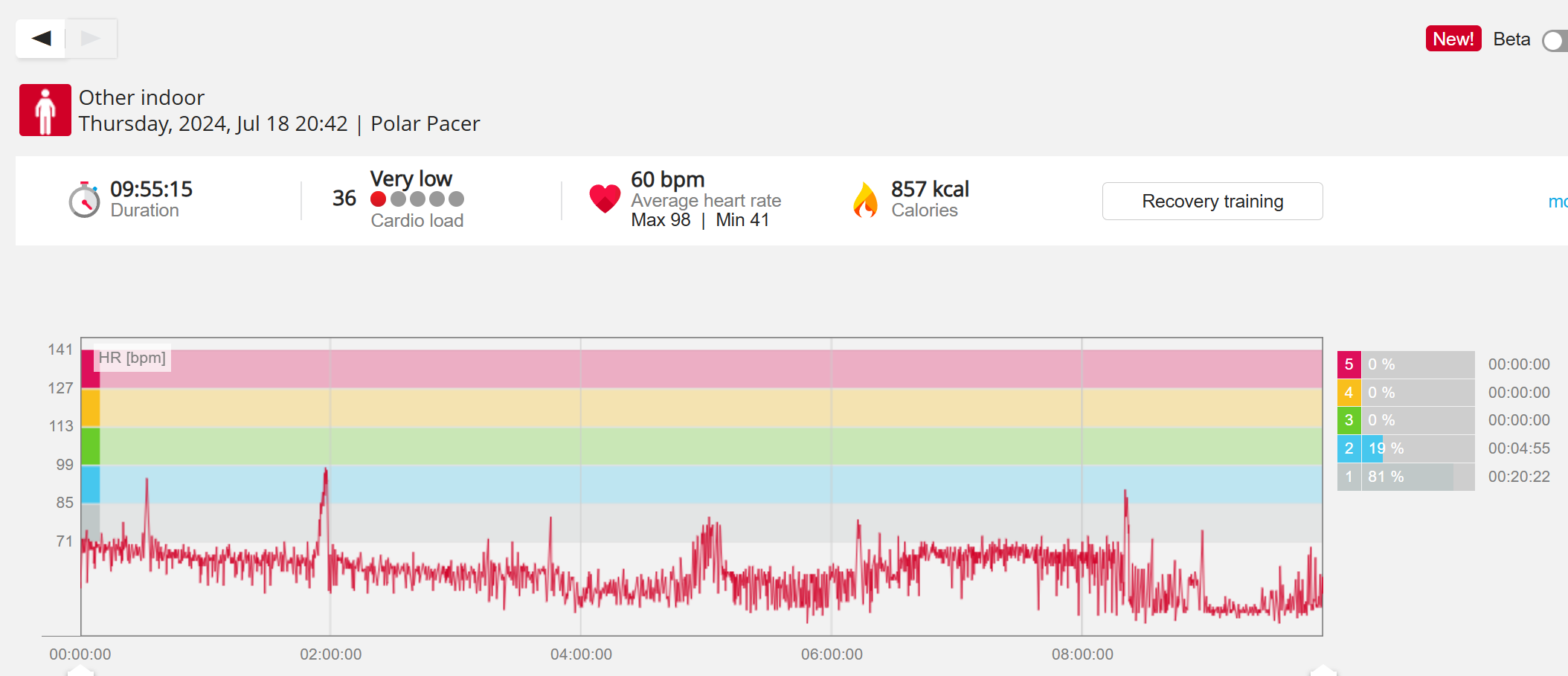 070991 - Post hike HR profile beginning 2009 aligns with indoor activity