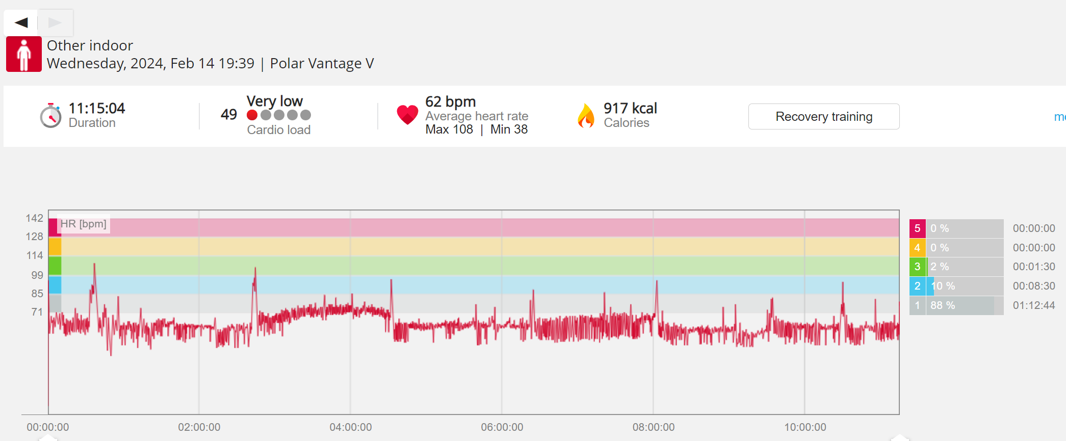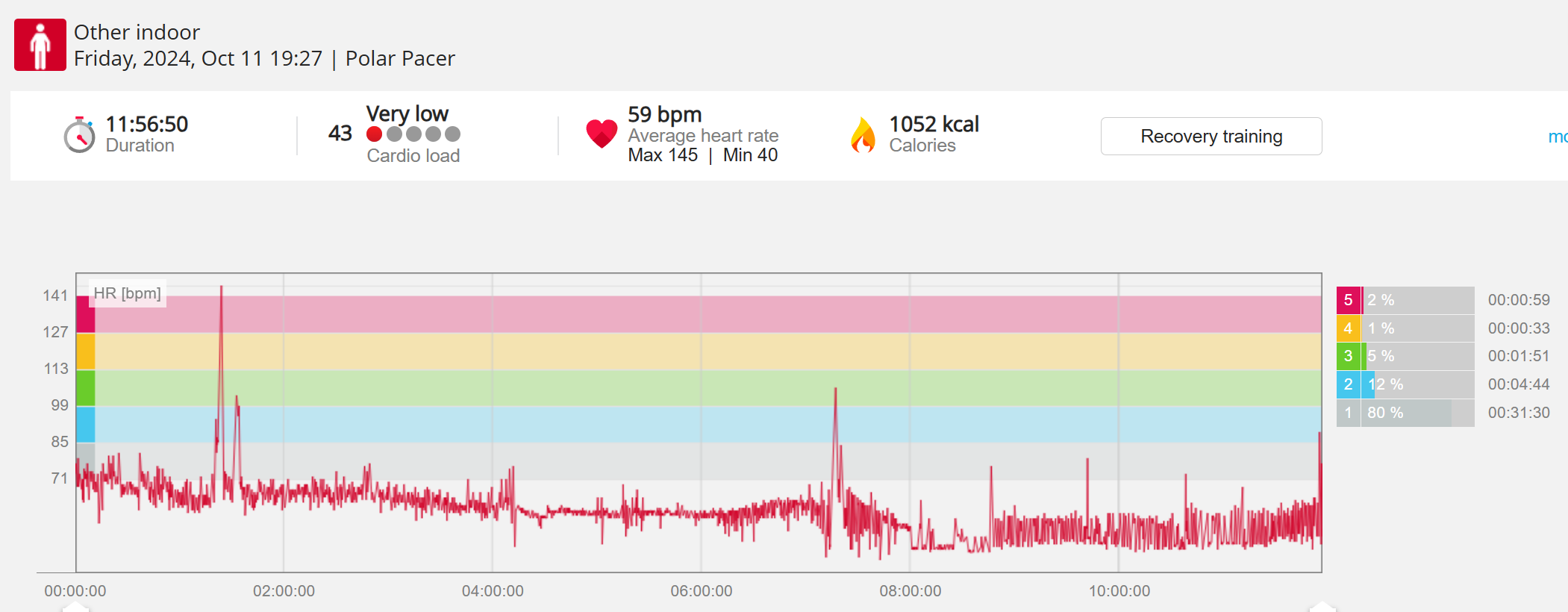 159107 - Post hike HR profile beginning 2058, aligns with indoor activity after